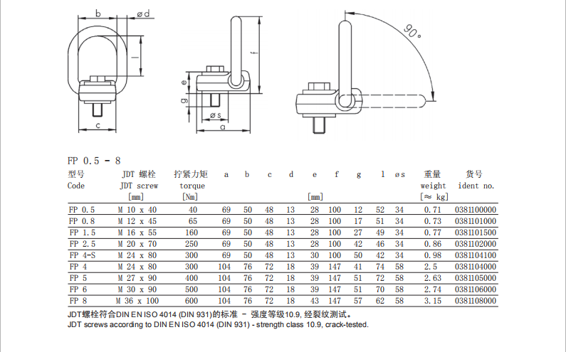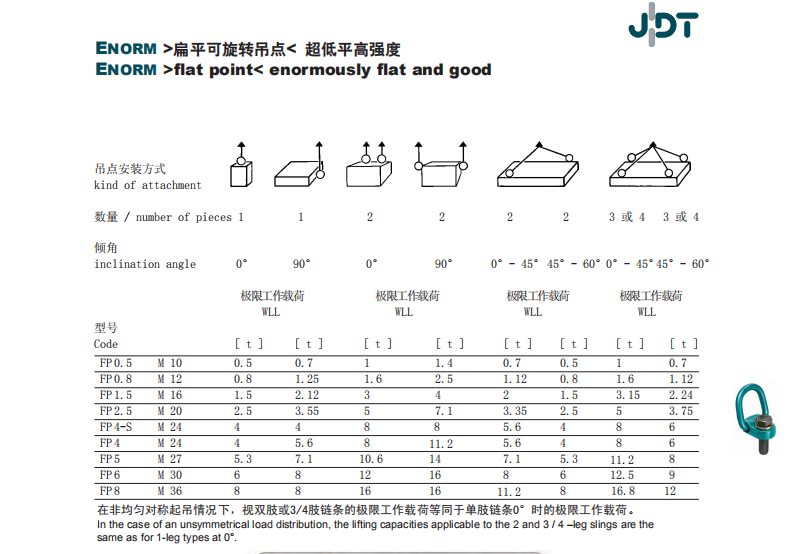 德國JDT可旋轉(zhuǎn)扁平吊點FP型 扁平側(cè)拉吊環(huán)