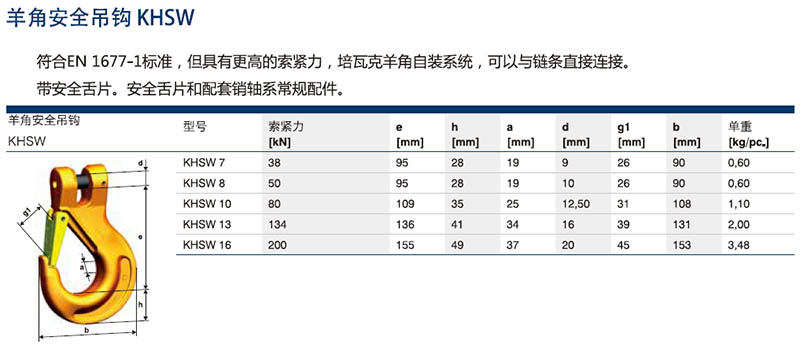 培瓦克Pewag羊角安全吊鉤KHSW